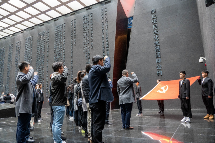 活动中,师生党员代表共同收看了收录第七三一部队种种劣迹行为的记录视频。视频的内容深深的震撼了活动现场的师生们,同时唤醒了同学们对于维护民族主权的赤诚之心。随后,师生代表们再次重温了入党誓词,对经典红色思想有了进一步的理解和认识,更加深化了师生党员代表为祖国奉献的坚毅决心。