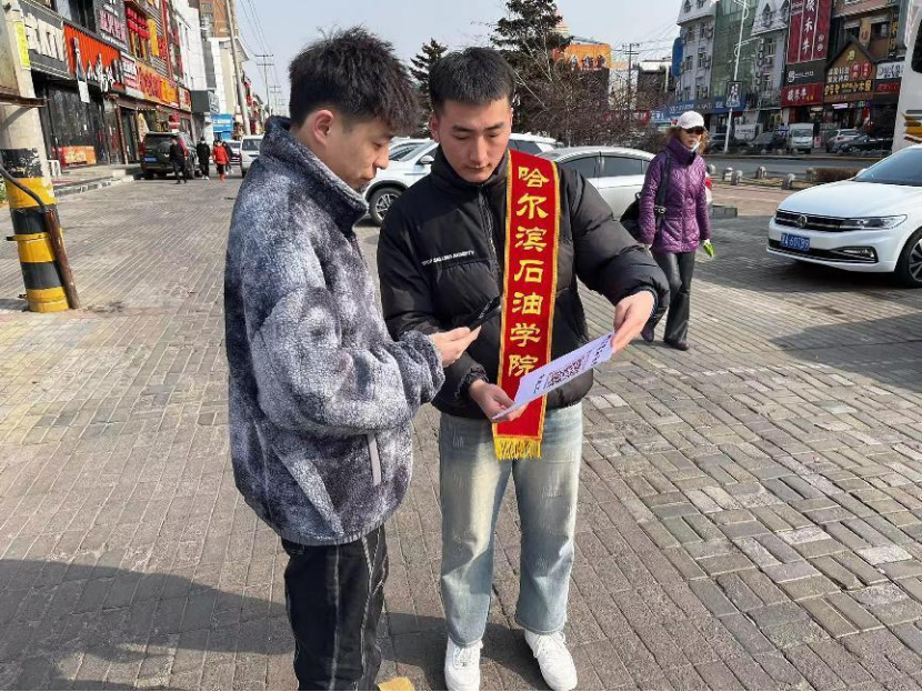 活动中,我院各团支部书记及团员代表在松北区学院路、松北区荣昌路、松北区师大南路、松北区利民西五大街及松北区南京路等五个地点采取了随机抽样的方法开展关于团员意识和对团组织的归属感的现状调查,共计调查106人,取样对象均为在校大学生和高中生。