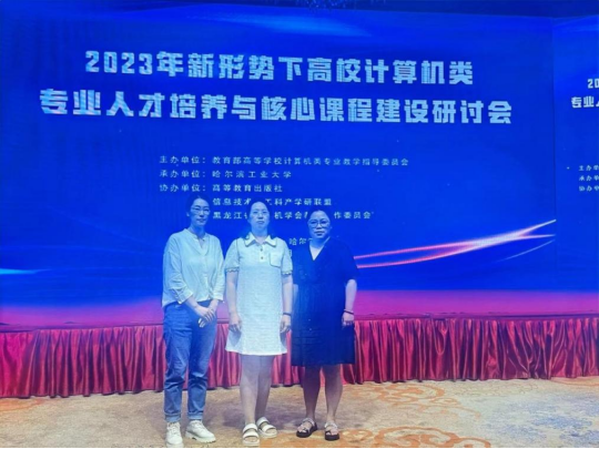 为深入贯彻落实2023年全国教育工作会议精神及《教育部高等教育司2023年工作要点》,加强计算机类专业人才培养,夯实计算机类专业核心课程教学根基,推动高校一流课程与教材建设,2023年8月1—3日,在哈尔滨召开“2023年新形势下高校计算机类专业人才培养与核心课程建设研讨会”,信息工程学院院长朱佳梅、大数据专业教研室主任邓春伟及信息安全专业教师张旭参加了本次会议。