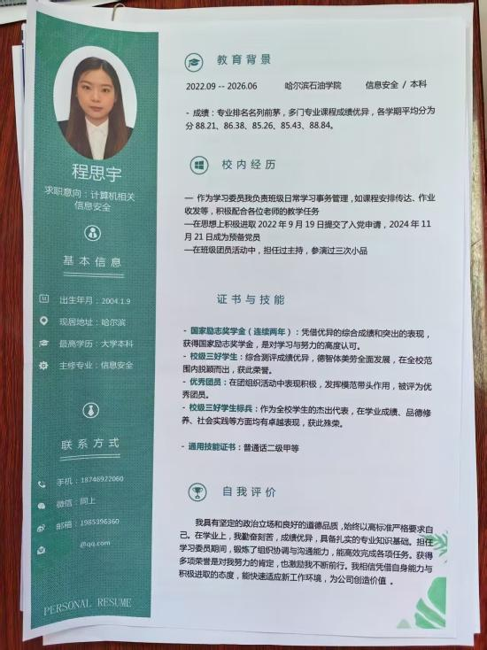 此次简历大赛的成功举办,不仅帮助同学们认识到自身简历的不足,掌握了简历制作的实用技巧,也让同学们对未来的职业规划有了更清晰的认识。期待信息工程学院的学子们能够凭借出色的简历和卓越的能力,斩获心仪的offer,开启精彩的职业生涯,也希望他们能在未来的求职路上大放异彩!