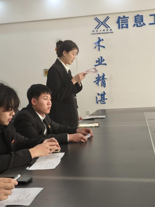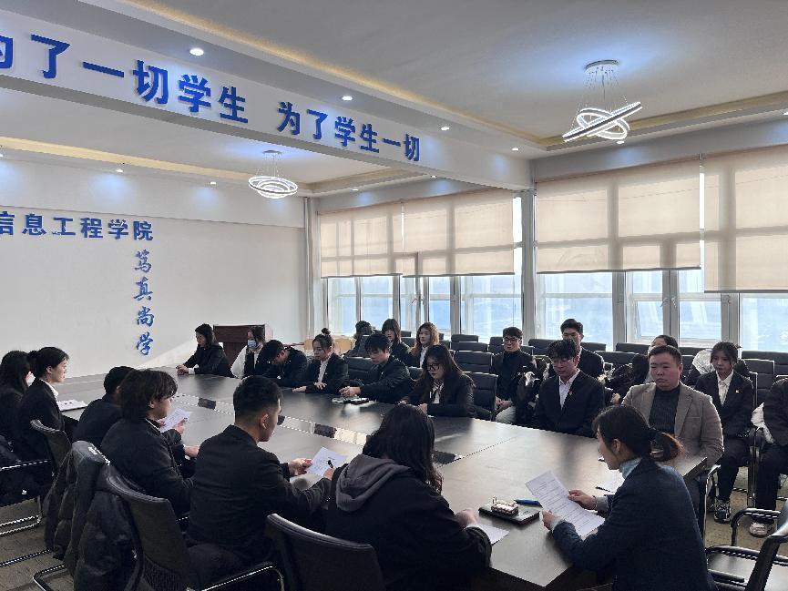 为深入学习贯彻习近平新时代中国特色社会主义思想主题教育,进一步强化学生党员队伍建设,增强党组织核心力量。全面建设有组织、有纪律、有担当、有能力的学生队伍。2023年12月18日,信息工程学院学生第一党支部于四楼会议室召开预备党员转正大会。信息工程学院学生第一党支部书记宋楠楠及全体学生党员出席本次会议,会议由学生党支部书记宋楠楠主持。