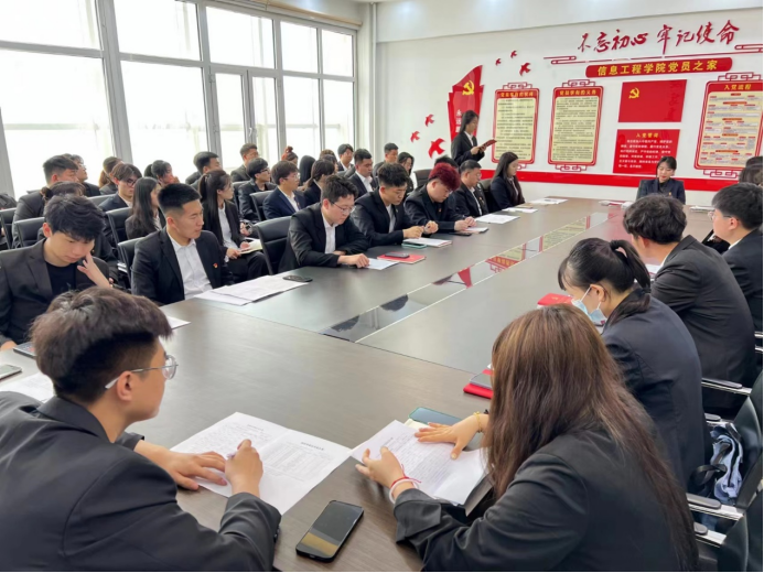 为深入学习贯彻党的二十大精神,进一步强化学生党员队伍建设,增强党组织核心力量。全面建设有组织、有纪律、有担当、有能力的学生队伍。2023年5月25日,信息工程学院学生第一党支部于四楼会议室接收预备党员暨预备党员转正大会。信息工程学院学生第一党支部书记王素君及全体学生党员出席本次会议,会议由学生党支部书记王素君主持。