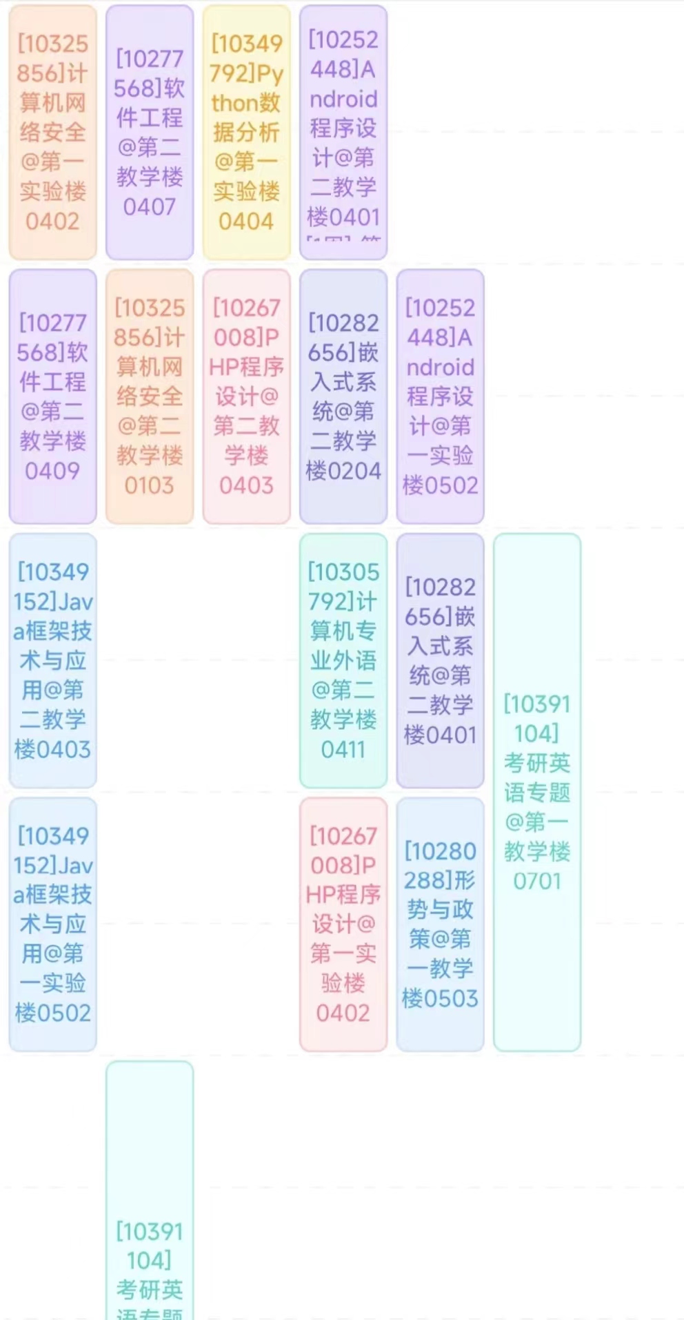 看这个课表中,最显著的就是Java,作为当下一个热门的编程语言,具有强大的功能和高度的通用性,大量的企业级系统、web应用都是基于Java构建的。同时,在移动开发领域,尤其是安卓应用开发中,Java也发挥着关键作用。