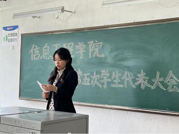 为信息工程学院第五次学生代表大会全体会议的召开预先进行准备工作,更好的传达出学生代表大会中的核心奉献精神,更新同学们的意识形式。信息工程学院于2023年5月16日召开了第五次学生代表大会全体会议,出席本次会议的有信息工程学院党总支书记毛雷,信息工程学院党总支副书记于洪峰,信息工程学院团总支书记王素君,及各年级辅导员和80位学生代表。