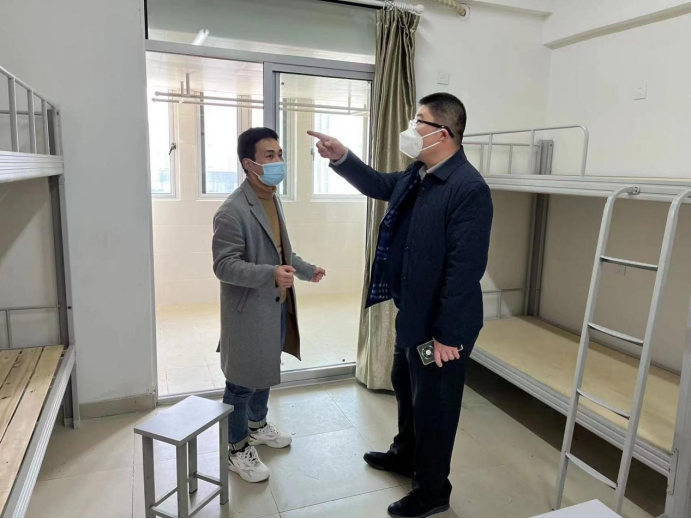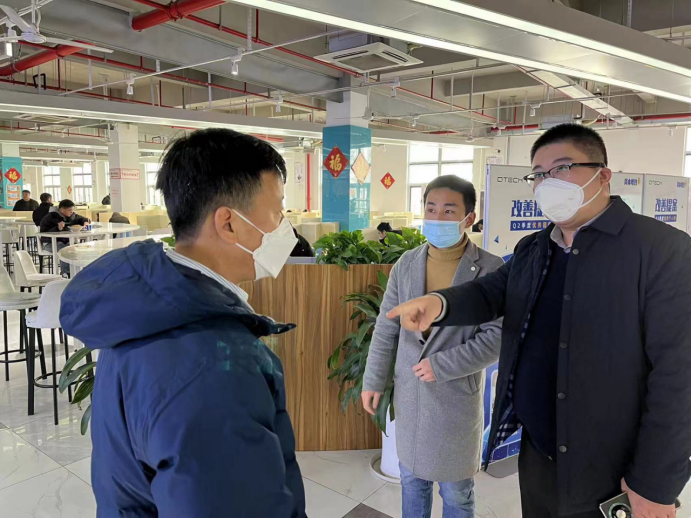 毛雷一行在昆山丘钛微电子科技股份有限公司人力资源部招聘主管郝凯峰的陪同下参观了公司展馆和工厂厂区、生活区、食堂等场所,详细了解了学生的生活环境,并与学生进行了座谈。