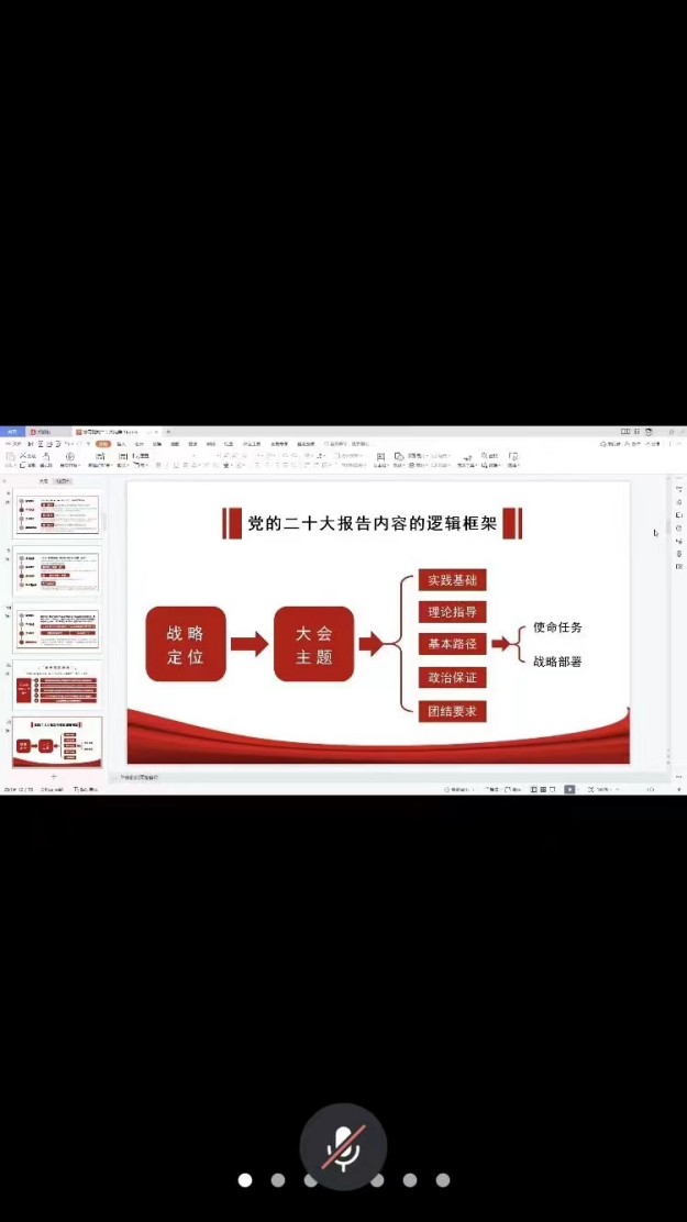 党总支书记毛雷以《新时代新征程坚持和发展中国特色社会主义的政治宣言和行动纲领》为题做宣讲报告。他从二十大报告的战略定位、大会主题、实践基础、理论指导、基本路径、根本保证、团结要求等七个方面阐述了党的二十大报告的深邃内涵。同时阐述了这次大会科学谋划未来五年乃至更长时期党和国家事业发展的目标任务和大政方针,明确宣示了我们党在新征程上举什么旗、走什么路、以什么样的精神状态、朝着什么样的目标继续前进的重大问题,对团结和激励全国各族人民为夺取全面建设社会主义现代化国家新胜利而奋斗具有着十分重大的意义。指明当前和今后学院各级党组织要将深入学习宣传贯彻党的二十大精神,全面学习把握落实党的二十大精神,深入理解和把握党的二十大报告作为一项重要的政治任务。