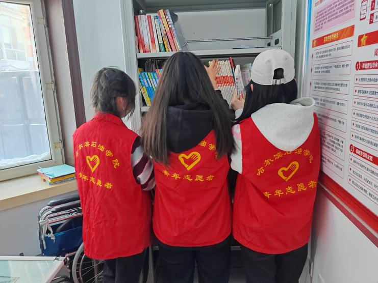 近日由于受暴风雪天气影响累计降雪量较大,雪后气温明显下降,路面积雪和结冰为群众的出行带来了极大的不便,为保障社区居民的出行安全,我院团员志愿者自发进行扫雪志愿服务。清雪过程中志愿者们发现部分垃圾被压在积雪下方,分工明确将垃圾清扫干净。后续团支部志愿者们对社区的图书室进行整理与分类,提高了图书室的使用效率,为读者提供更方便的查阅环境,同时也保护和延长书籍的使用寿命。