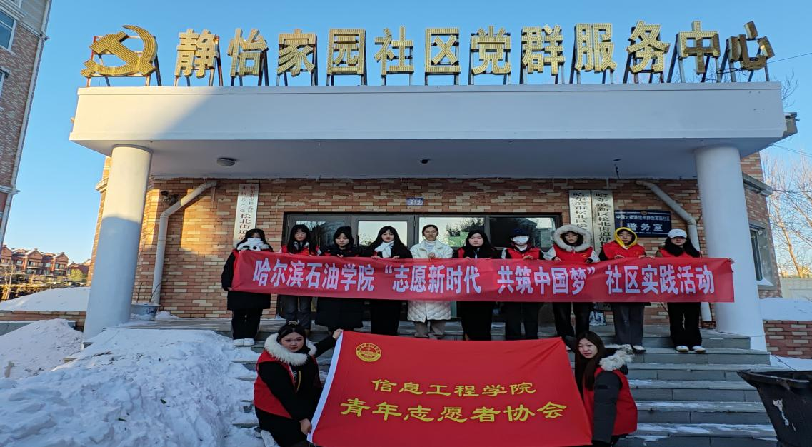 为弘扬志愿者“奉献,友爱,互助,进步”的宗旨,进一步增强信息工程学院团支部的志愿意识、责任意识和奉献意识,展现信息工程学院构建和谐校园的精神风貌。欧博abg游戏登录入口信息工程学院团支部于2023年11月9日下午13时在哈尔滨松北静怡家园社区开展“志愿新时代,共筑中国梦”主题志愿服务活动。