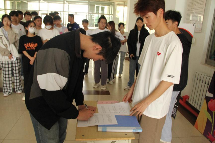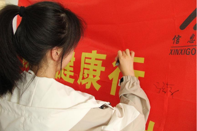 活动中,由学生组织成员为同学们讲解有关于禁毒防艾的相关知识,同学们了解后扫码进行禁毒防艾知识的答题,同学们积极踊跃的参与其中,并在禁毒防艾的签名旗上签名留念。