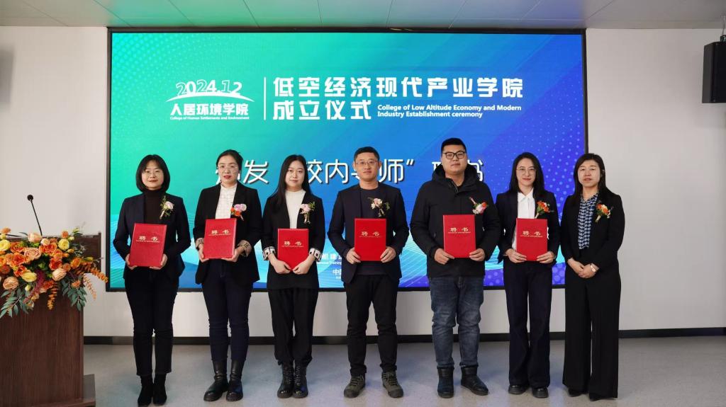康平军副校长、顾凤岐处长分别为低空经济现代产业学院“项目导师”、“企业导师”、“校内导师”颁发聘书。
