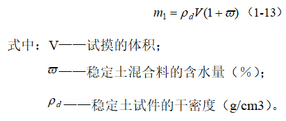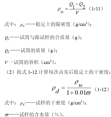 当起始含水量的试样击实后,可将试样搓散,然后加水拌合,但不需闷料,每次约增加2~3%的含水量,其中有两个大于和两个小于最佳含水量,所需加水量按下式计算: