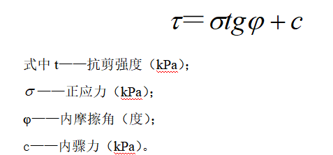 式中τ——相应于某一垂直压力的抗剪强度(kPa);